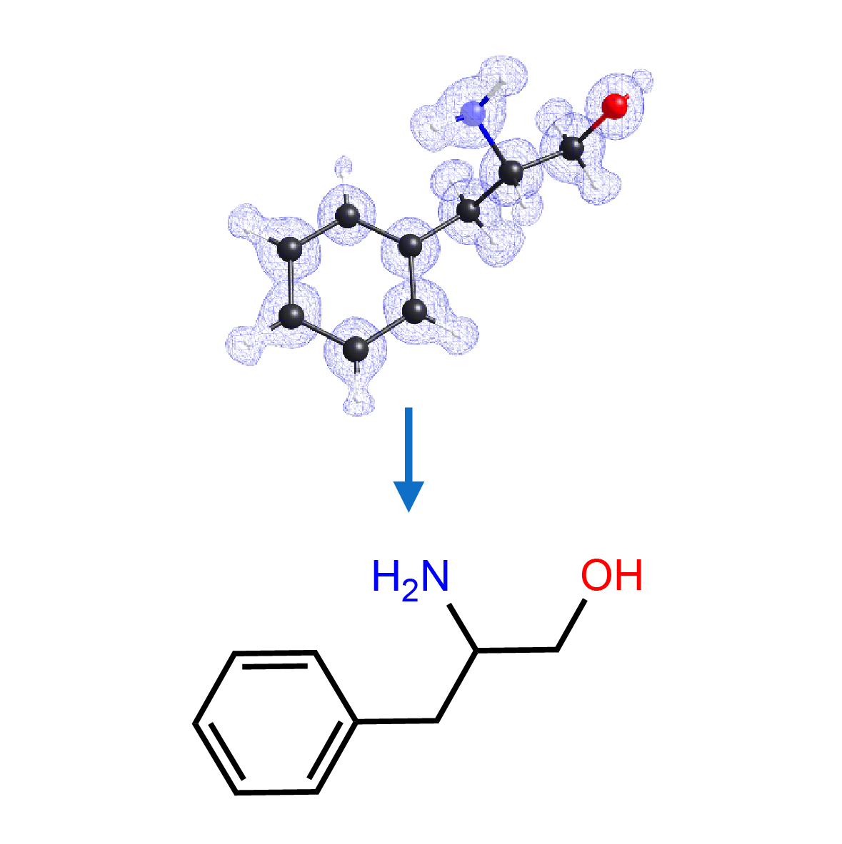 Similar to single-crystal X-ray diffraction, the relative configuration of chiral molecules (with multiple chiral centers) can be obtained directly from MicroED structures. If a molecule contains a known chiral center, this serves as an internal reference to deduce the absolute configuration of other chiral centers. For molecules without known chiral centers, co-crystallization with a chiral ligand of known configuration enables absolute configuration determination.